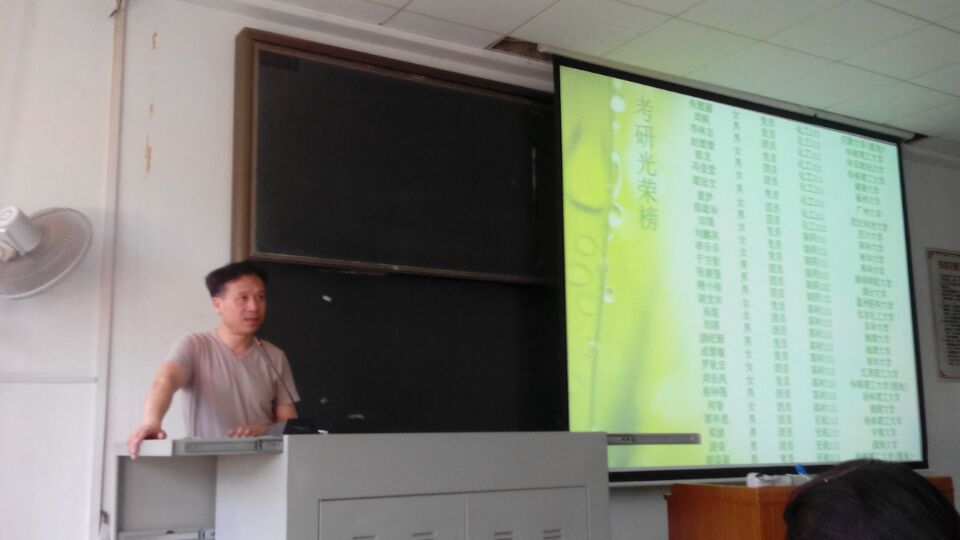 6月16日下午,PA官方平台在9-301召开PA官方平台考研动员大会,学院党委书记聂长明、党委副书记彭建南、学工室主任任辉、13级辅导员易利娜老师出席会议,大二大三对考研感兴趣的同学共一百多人参加会议,同时学院邀请了刚刚成功考上心仪学校的五位学长来交流考研心得及考研经验。