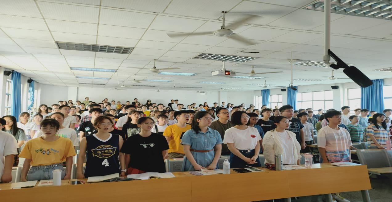 议程第一项,全体成员起立,奏唱国歌,在庄严肃穆的国歌声后,王宏青书记首先对参与此次培训的全体学生表示热烈的欢迎,同时鼓励同学们要认真参与此次培训,并对同学们提出具体要求与殷切期望。随后,陈楠老师上台强调了课堂纪律:①上课严肃认真,要注重课堂纪律;②注意上课时间,不可无缘无故迟到早退或旷课;③上课认真做笔记,参与互动,下课后巩固复习等。紧接着,学生代表马亚伦上台发言。典礼在全体奏唱《国际歌》后结束。