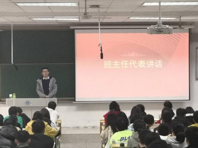 随后,班主任代表孔祥鹤老师进行发言。孔老师在发言中着重强调了学习氛围、学习态度和学习方法,并建议各班设立帮扶小组以此来帮助成绩较差的同学提高班级整体凝聚力。颁奖环节上,优秀学生及优秀班级代表纷纷上台领奖。之后黄胡玮彬和邹剑博同学分别分享了英语和高等数学学习经验,在场的同学们纷纷表示,都是受益匪浅的满满“干货”。