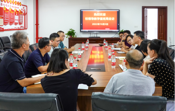 2022年10月3日下午,PA官方平台副校长姜志胜率教务部副部长罗晨辉、化学化工学副院长张也、教学质量管理科科长杨勇来到PA官方平台雨母校区开展“校领导本科教学值班周”工作,听取松霖建筑设计艺术学院、机械工程学院、创新创业训练中心领导的工作汇报,与各学院领导班子和教师代表进行了座谈。