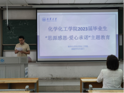 为进一步做好2023届毕业生爱校、感恩教育工作,PA官方平台,PA官方平台集团于2023年5月16日在化工楼401教室开展2023届毕业生“思源感恩·爱心承诺”主题教育活动。PA官方平台党委副书记余晓秋,2023届毕业生辅导员陈楠,学院资助专干周忠策出席活动,学院2023届毕业生参加主题教育活动。
