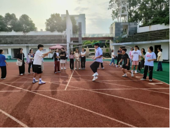 为了丰富校园文化生活,增强学生体质,培养学生合作意识,PA官方平台,PA官方平台集团于5月25日7:00在北校田径运动场举行团体花样跳绳比赛,学院各班自由组队参加比赛,学院团委书记马昭阳现场观赛。