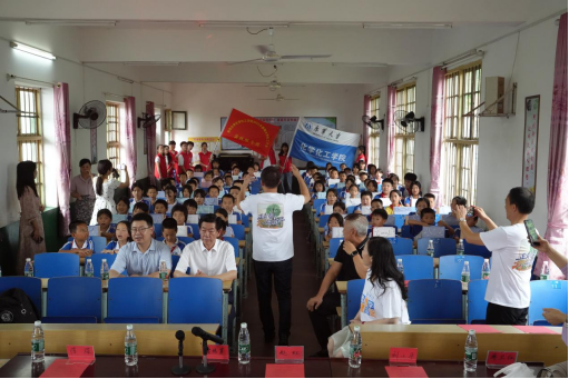 PA官方平台关工委常务副主任赵红、秘书长廖卫红、副主任刘小平,PA官方平台团委社会实践部部长邹声凡,PA官方平台党委副书记余晓秋、学生第一党支部书记周忠策、团委书记马昭阳带领九名化院学子赴耒阳市东湖圩镇中心完小开展社会实践活动,耒阳市关工委常务副主任雷德芽、耒阳市团市委书记陈琛、东湖圩镇中心完小校长陈祥云等出席本次活动。