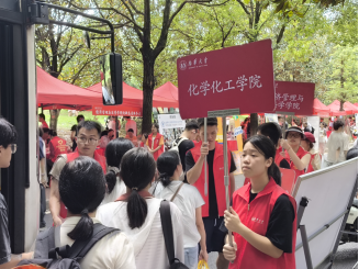 骄阳似火,迎新大道上的一抹红传递着新生入校的第一份热诚。引导的标牌、伸出的双手、忙碌的身影...饱含对新同学的诚挚欢迎。