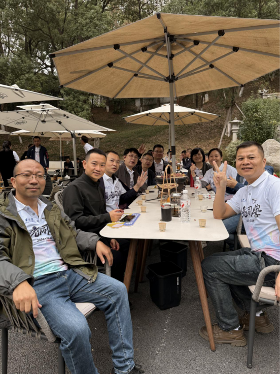 午后,校友们奔赴雨母山风景区。一行人徒步登顶,俯瞰衡阳秋色,随后于雨母山庄露天茶室围炉煮茶。清茶氤氲间,有人打牌竞技,有人漫步私语,更有三五成群翻看老照片,感叹岁月如歌。傍晚的雨母山庄餐厅灯火通明,晚宴上校友们举杯相约:“再过二十年,仍要如此相聚!”