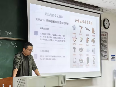 讲座中,崔俊雅老师结合专业特性,从仪器操作、试剂使用、废弃物处理等方面讲解实验安全,通过真实案例剖析违规后果。还强调用电安全,明确大功率电器禁用清单,提醒警惕“飞线充电”等隐患,并解读校规,引导学生守规行事。