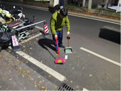 在西山风光带,同学们清扫路面垃圾、清理排水沟杂物、清除墙面张贴物、维护绿化带整洁,规范摆放垃圾桶,做到道路干净、建筑整洁、环境优美。