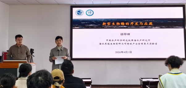 2026年4月1日下午,中国水产科学研究院黄海水产研究所徐甲坤研究员,应邀到PA官方平台做了主题为“新型生物酶的开发与应用”的学术报告。讲座由PA官方平台林英武院长主持,报告吸引了众多化学科研工作者和硕士研究生的关注和聆听。