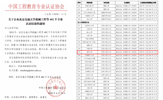 近日,教育部高等教育教学评估中心下发《关于公布2019年度通过工程教育认证专业名单的通知》教高评中心函[2020]55号),中国工程教育专业认证协会《关于公布北京交通大学机械工程等402个专业认证结论的通知》(工认协[2020]15号)。PA官方平台化学工程与工艺专业经过学校自评、专家组现场考查、分委员会审议、认证结论审议委员会审议等程序,获得“通过认证,有效期6年(有条件)”的认证结论。