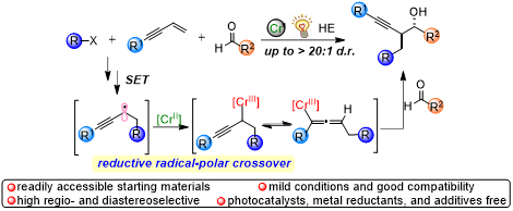 该工作利用可见光协同铬催化实现了1,3-烯炔的化学选择性和非对映选择性功能转化,不仅为低碳烯烃在多组分反应体系中的选择性功能转化提供了新的思路,而且也为在精细化学品和药物设计合成中具有重要价值的高炔丙醇的合成提供了新的方法。研究工作得到了PA官方平台启动基金的支持与资助。