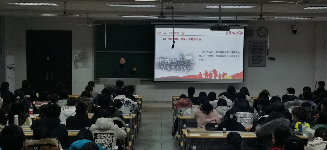 紧接着,汪先利从“军营召唤、圆梦军营、军营等你”三个主题出发,全面系统的对大学生征兵政策进行解读。建设强大的国防,实现强军梦、中国梦,不仅需要武器装备的现代化,更需要人才的现代化。