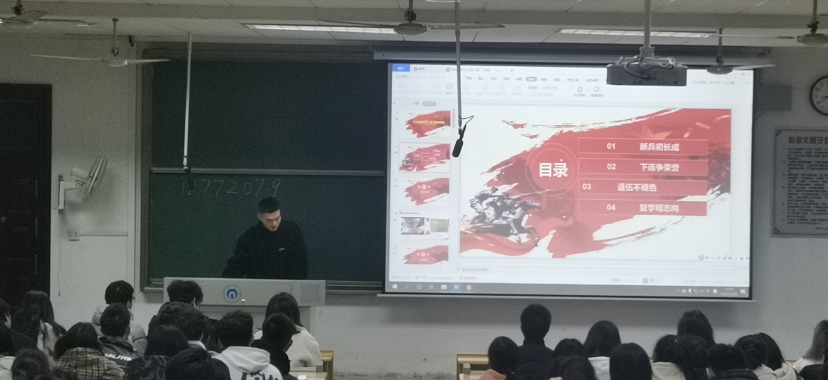 随后,优秀退役士兵、PA官方平台“最美大学生”黄程分享他的参军之旅。他将爱国之心化为报国之志,结合军队的生活和磨练,向同学们展示了新时代中国青年所应有的责任和担当。