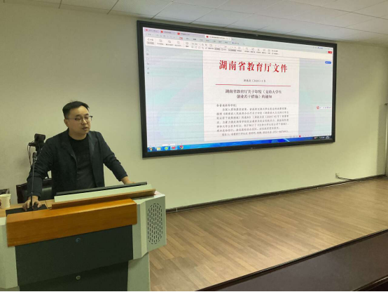 张也副院长随后详细介绍了湖南省及学校在创新创业方面的支持政策。他重点解读了大学生创新创业训练计划、学科竞赛奖励办法、创业孵化基地入驻政策等内容,并鼓励学生积极申报各类创新创业项目。“学院将全力支持同学们的创新想法和创业实践,在项目指导、资金申请和成果转化等方面提供全方位帮助。”张院长还分享了近年来学院在“互联网+”、“挑战杯”等赛事中取得的优异成绩,激励同学们勇于尝试、敢于突破。