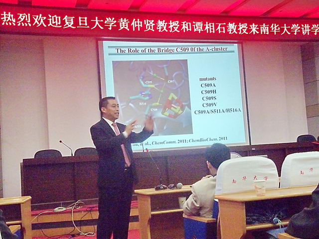 首先,黄教授以血红蛋白的结构和功能及老年痴呆症相关蛋白的研究展开论述。黄教授在讲学过程中,以自己的亲身经历为例,并结合自己学生在蛋白酶方面的突出成就,详细阐明了血红蛋白的结构、功能对老年痴呆症的影响,并强调了生物化学的研究在人类抵抗疾病过程中起到的关键作用。随后,谭教授以生理、病理过程中重要金属蛋白、金属酶为主题,阐述了金属蛋白及金属酶的特性,对其研究方法和研究目标做了深层次的分析,并以乙酰辅酶A合成酶为例,讲述金属酶对人类疾病的影响。最后,两位教授就师生的疑问作了详细讲解,鼓励后辈们要勤于学习,勇于探索自然的奥秘。至此,此次讲座圆满结束。