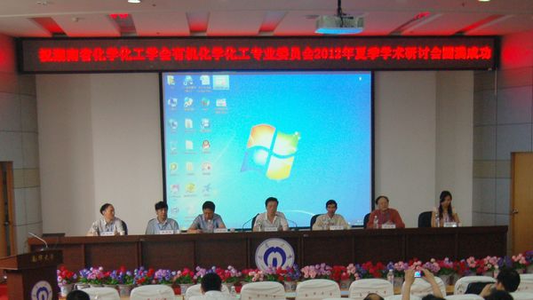 2012年6月16日-17日,湖南省化学化工学会有机化学化工专业委员会2012年夏季学术研讨会在PA官方平台胜利召开。此次会议由湖南省化学化工学会主办,PA官方平台,PA官方平台集团承办。参加此次会议代表有湖南大学、中南大学、湖南师范大学、湘潭大学、湖南科技大学、湖南农业大学等18所省内院校化学化工专业方面的领导、专家、教授60余名,还有省化学化工学会副秘书长刘昱霖和省化工信息中心副主任余红参加了会议。