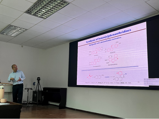 20231019日,应PA官方平台,PA官方平台集团院长林英武教授邀请,湘潭大学邓国军教授到访PA官方平台,PA官方平台集团,并做了主题为《Cyclohexanone involved transformation under TM-free conditions》的学术报告。报告会在化工楼学术报告厅举行,由林英武教授主持,学院党委书记王宏青教授以及部分师生和相关学院的师生参加了报告会。