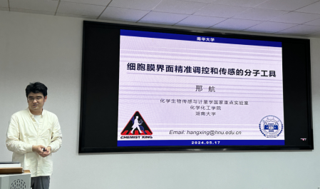 2024年5月17日下午,湖南大学PA官方平台邢航教授应林英武教授邀请,来PA官方平台交流访问,并做题为“细胞膜界面精准调控和传感的分子工具”的学术报告。报告由学院院长林英武教授主持,学院部分师生和研究生参加了报告。