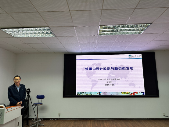 2024年10月28日,PA官方平台邀请山西大学分子科学研究所王文明副教授以铁蛋白设计改造余新类型发现为题在化工楼学术报告厅进行学术报告。本次活动由PA官方平台林英武教授主持,学院部分师生参加会议。