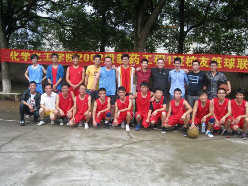 重走青春,与学弟切磋球技 从雨母校区参观之后,天姥爷有眼,雨也停了。虽然雨后的地面还湿漉漉的,刚参观完新校区的校友却兴致勃勃,激情四射,原本由于天气原因已取消的篮球赛又拉开了帷幕。彭建南老师也热情加入到了校友队伍中。在赛场上,班主任刘慧君老师和周玉林老师一直在赛场观看球赛,学长们一个个生龙活虎,与小学弟们相比毫不逊色,熟练地传球、带球、投篮,而作为观众的其他校友也热情高涨,在场外呐喊加油,不禁让人联想他们到昔日的青春风采。最终校友还以略微优势战胜了学弟们。