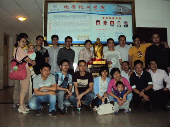 校友在聂长明老师,彭建南老师、刘慧君老师等人