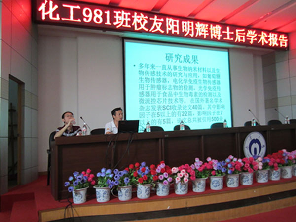 5月20日,PA官方平台981班校友阳明辉博士后在图书馆报告厅进行有关生物纳米材料在传感器中的应用的学术报告。现场座无虚席,许多化工专业人士及相关专业的学生前来听阳明辉博士后的讲座。
