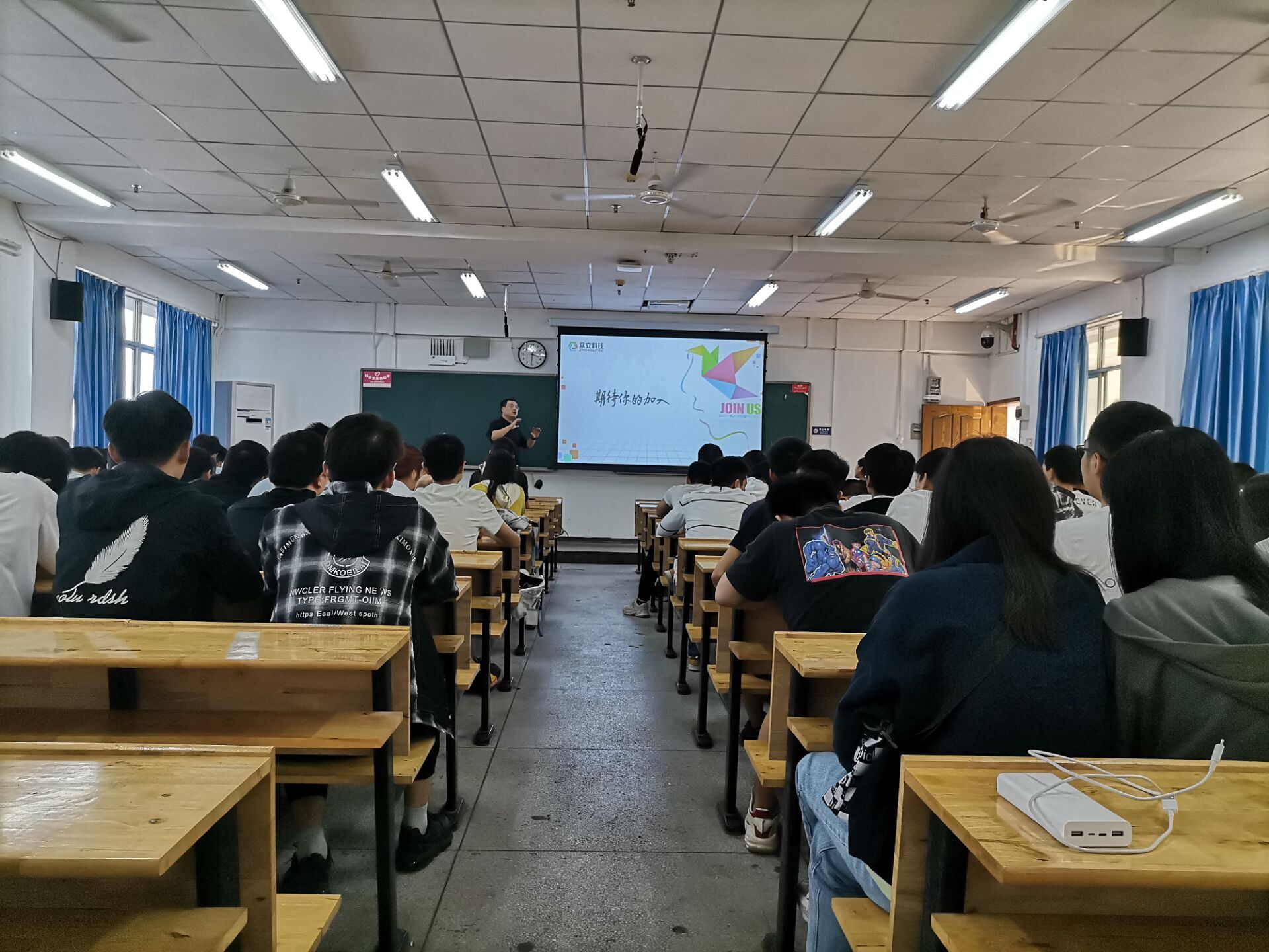 分享会开始,廖云简单从文强的学术背景、职业规划、个人发展情况进行了初步介绍。稍后,文强结合个人的求学创业经历、材类行业的就业环境给同学们进行了职业生涯规划的分享。之后的互动交流环节中,文强以浙江众立合成材料科技股份有限公司为例,从面试技巧等实际情景出发为现场的同学们解疑答惑。