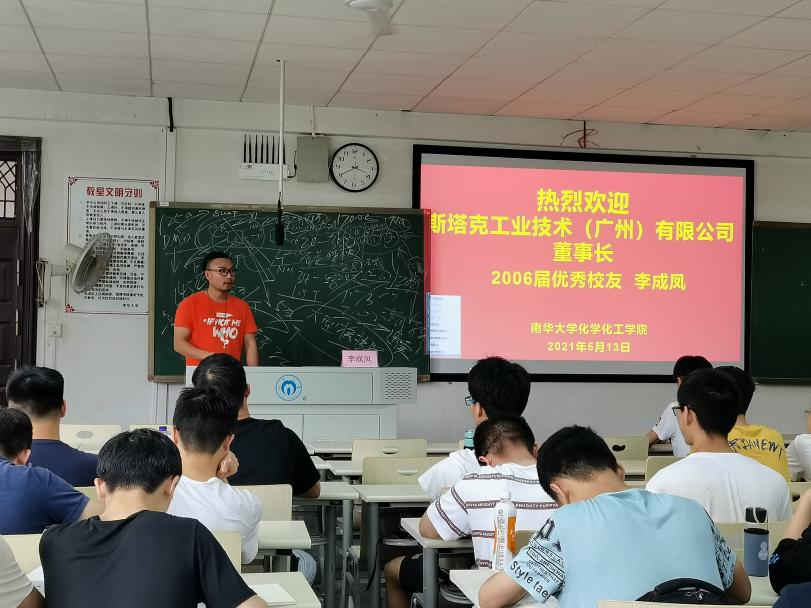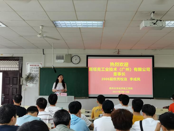 5月13日下午3点,PA官方平台在九教402室举行了“以科学研究为导向,实现专业与产业对接”的专题报告会。PA官方平台2006届优秀校友,斯塔克工业技术(广州)有限公司董事长李成凤应邀回母校主讲,PA官方平台党委副书记余晓秋主持,PA官方平台化学工程与工艺专业七十余名同学参加了本次座谈会。