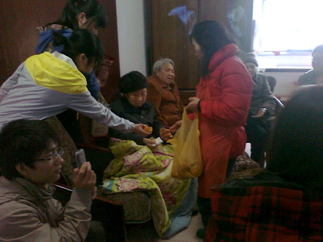 下午三点,志愿者手拿水果及清扫工具向太平小区前进。到达目的地后,各组队员有条不紊、积极勇跃地投入到劳动中。有的清洁地面卫生,清理屋内外的垃圾。有的擦窗户,粉刷墙壁。有的为老人整理床铺,洗床单,洗衣服。两个多小时的劳动结束后,队员们还将准备好的节目一一献上,逗得老人们笑的合不拢嘴。老人们也受到了感染,不仅向志愿者展示了自己的字画,还同志愿者们一同高歌,从红歌到儿歌,从老歌到流行歌,情绪高涨、豪情万丈。