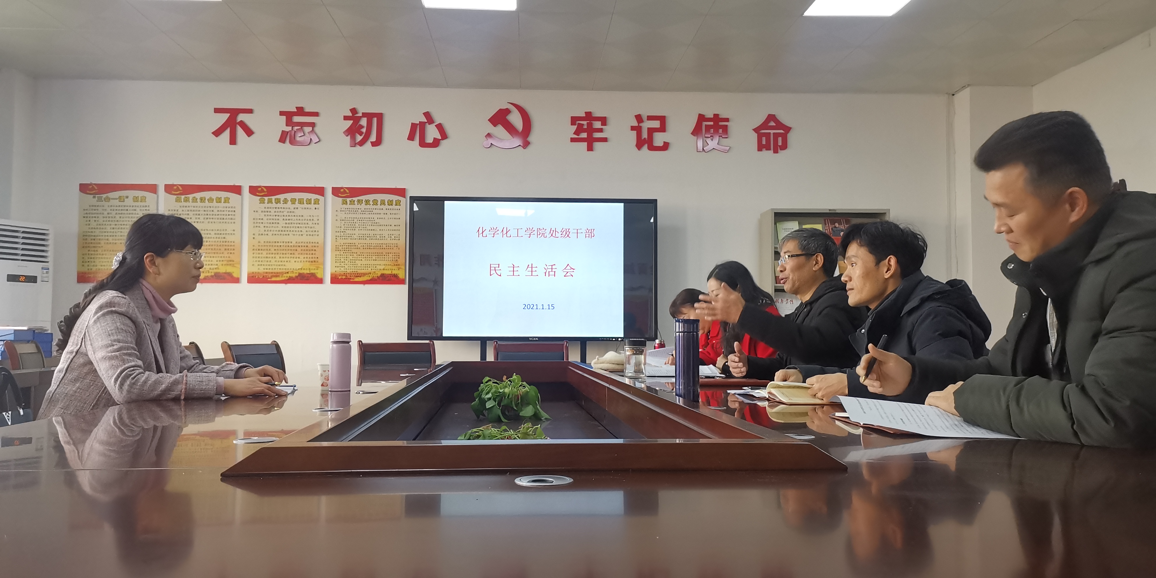 化学化工学院于1月15日上午在化工楼党建活动室召开2020年度处级党员领导干部民主生活会。校党委委员、副校长何旭娟出席指导,全体院领导、党委委员参加,会议由学院党委书记王宏青主持。