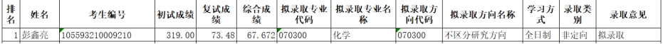 鉴于考生马欣月(考生编号105113013214760)放弃录取名额按照学校及PA官方平台研究生招生工作的复试方案,根据2023411日的复试成绩排名,对第33名彭鑫亮(105593210009210)进行补录。